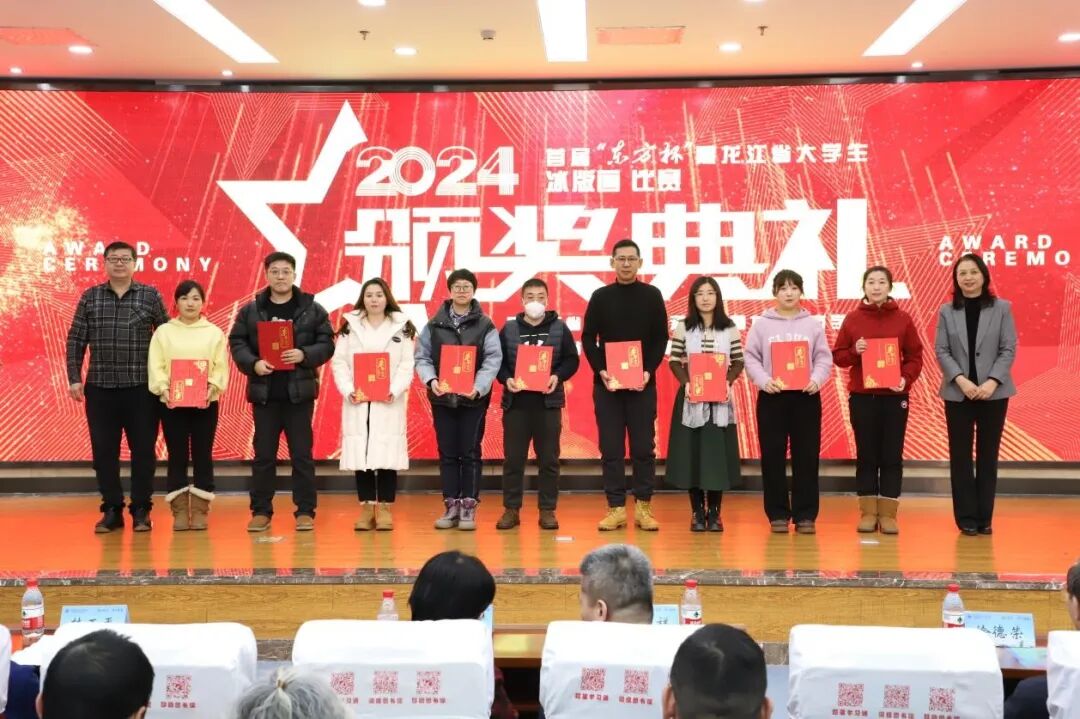 1月5日下午,首届“东方杯”黑龙江省大学生冰版画比赛颁奖典礼在我校图书馆报告厅举行。校长徐梅、党委书记徐德荣、副校长韩玉平、校长助理李义,教务处、科研处、图书馆、艺术设计学院相关负责人以及黑龙江省教育厅体卫艺处处长何永祥,黑龙江省标识行业协会会长孙磊,哈尔滨师范大学美术学院原副院长张红松,黑龙江省工艺美术协会副会长郭居凯,太阳岛风景区冰雪规划设计室主任侯卫东,太阳岛风景区冰雪规划设计室副主任盛琰,汇丰集团副总经理赵淑娇等嘉宾出席典礼。本次比赛自12月27日开赛以来,吸引了来自哈尔滨工业大学、东北林业大学、东北农业大学、黑龙江大学等46个参赛院校的300余名选手报名参赛,评委们从作品的创意、技法和呈现效果等方面进行了全面细致的评审,最终在教师组和学生组中分别评选出一等奖3名、二等奖6名、三等奖9名以及优秀奖、创意奖、技巧奖若干名。