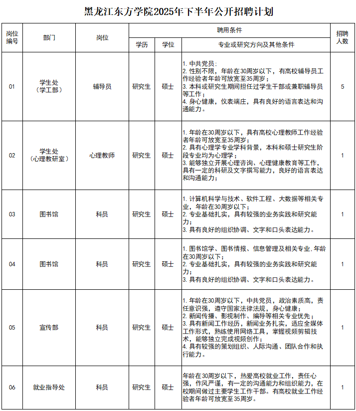 (一)报名方式:登录黑龙江东方学院简历投递平台(http://dfxy.zhanyiwangluo.com),应聘岗位编号见《黑龙江东方学院2025年下半年公开招聘计划》。