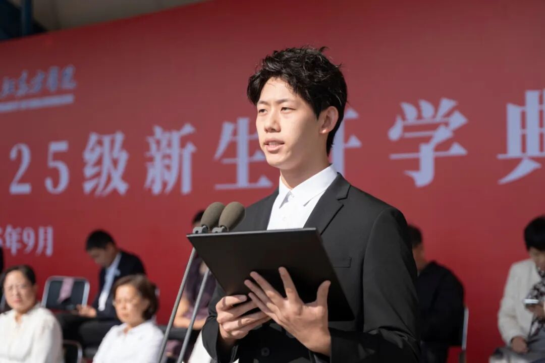 食品工程学院高分子材料与工程专业2025级徐博阳同学作为领誓人带领全体新生庄严宣誓:“我将传承东方之精神,立校为公、厚德树人,自强不息、务实前行,不负时代、不负青春,争做优秀东方人,为实现中华民族伟大复兴不懈奋斗!”