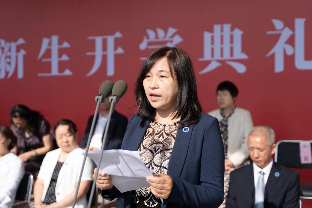 她寄语同学们要自信自强,做追梦人,高考成绩不代表未来,“今日凡鸟,他年凤凰”,要怀揣梦想与勇气,将个人理想与国家需要结合,拒绝平庸、躺平,以朝气蓬勃、自信自强、积极向上的姿态进步成长,以华天御同学为榜样,展现东方学子的责任担当;要珍惜当下,做行动派,学校已通过调整学科专业、开设辅修与微专业、放开转专业限制等举措为同学们提高竞争力创造有利条件,希望新同学们珍惜时光,专注当下,勤奋学习、努力实践,成为一专多能的有用之才;要修身立德,做高尚者,以“蒙以养正”的校训作为修身成才的根本遵循,学习创办者的崇高精神品格,学习身边榜样的优秀品质,积极参与社会实践和志愿服务,明大德、守公德、严私德,努力成为德智体美劳全面发展的东方学子。希望同学们在崭新的大学生活中植根东方、向阳而生,从“懵懂新生” 成长为 “有为青年”,在东方校园遇见最好的自己。