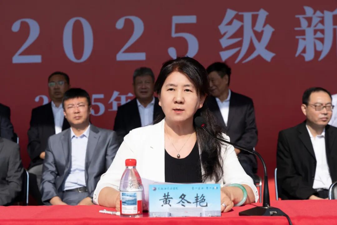 黄冬艳书记寄语新同学,从佩戴上校徽的这一刻起,你们的成长便与东方学院的发展紧密相连。希望同学们珍藏好校徽,深切领会其中蕴含的作为东方人的自豪和荣耀、铭记母校对你们的殷切期望与嘱托,珍惜宝贵的学习机会,严于律己、诚信做人、不负重望、早日成材,传承东方精神,为东方争光,牢记“蒙以养正、学以致用”的校训,以开学典礼为起点,在美丽的东方校园里,不负时代、不负韶华,用勤奋与智慧书写人生的崭新篇章,用青春与汗水为学校的发展续写新的荣光!祝愿全体新同学在东方校园收获成长,振翅高飞!