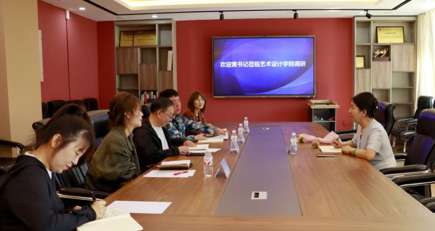 9月10日,党委书记黄冬艳深入联系点艺术设计学院走访调研,看望学院教师,实地参观实验室、教学设施及学生教室,详细了解学院教学科研硬件条件与日常教学运行情况,与学院领导班子面对面交流,为学院发展把脉定向。艺术设计学院院长张建设、党总支书记郭文锋,副院长王航、李平参加调研汇报会。