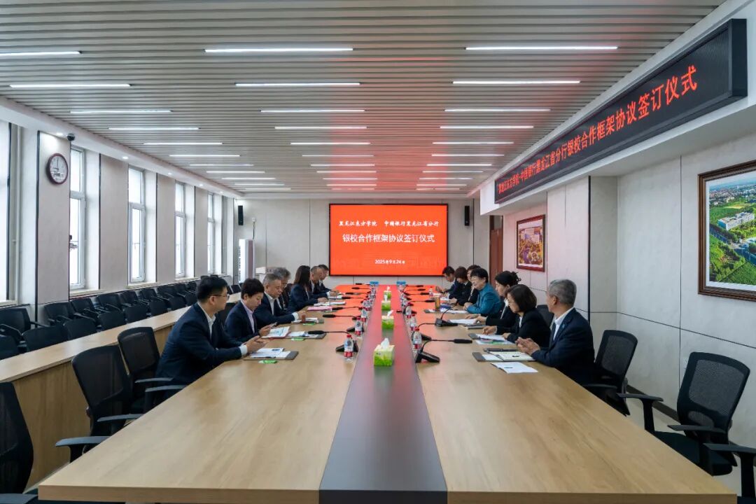 9月24日,我校与中国银行哈尔滨平房支行举行银校合作框架协议签订仪式。中国银行黑龙江省分行副行长宋卓、行政事业机构部总经理张奕,平房支行行长李春光、副行长胥东方、公司金融部主任杨缘缘、个人金融部主任王书全,友协大街支行行长马欣,我校校长徐梅、校长助理张丽华和相关职能部门负责人出席仪式。仪式由我校党委书记黄冬艳主持。