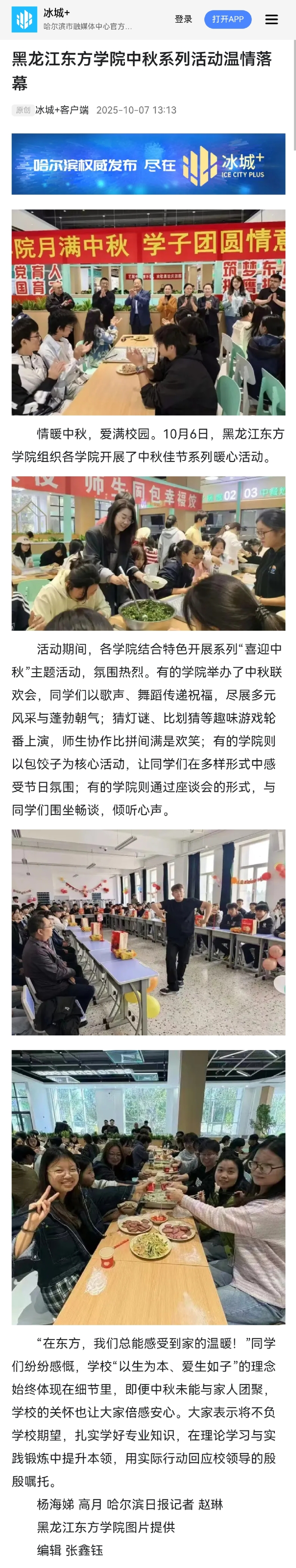 冰城+:黑龙江东方学院中秋系列活动温情落幕