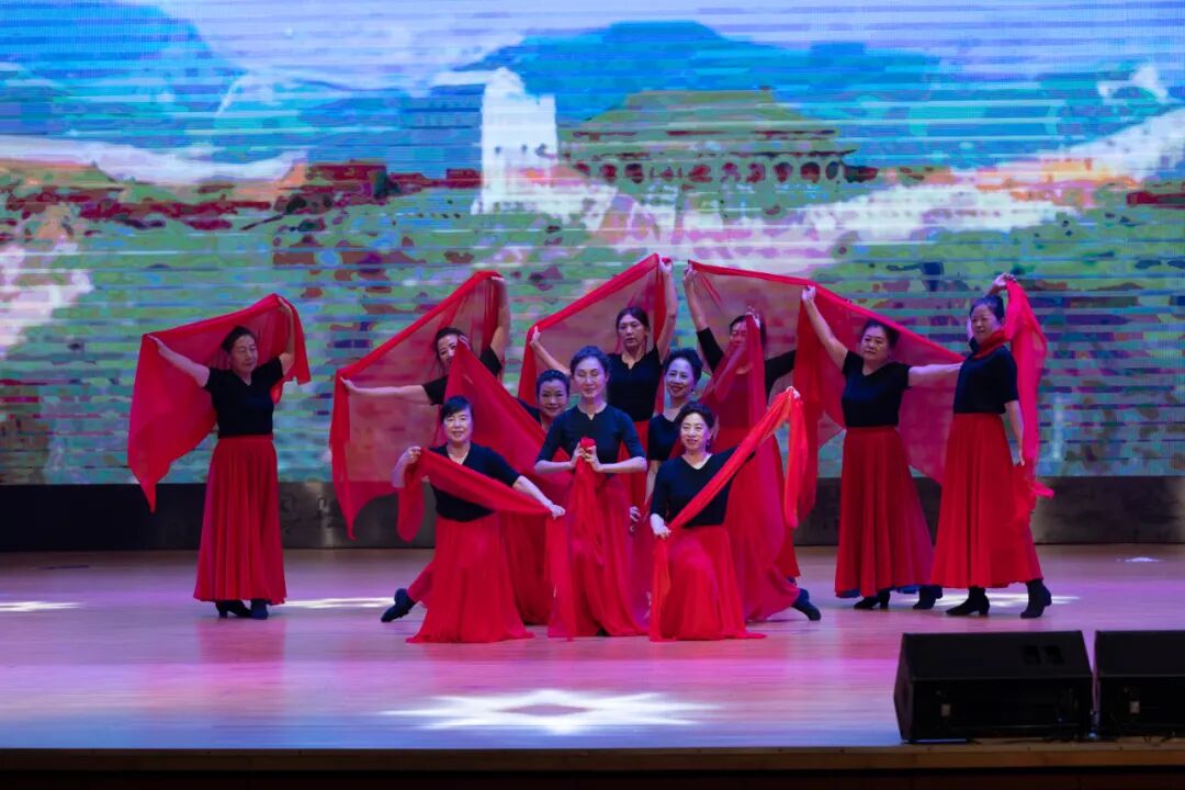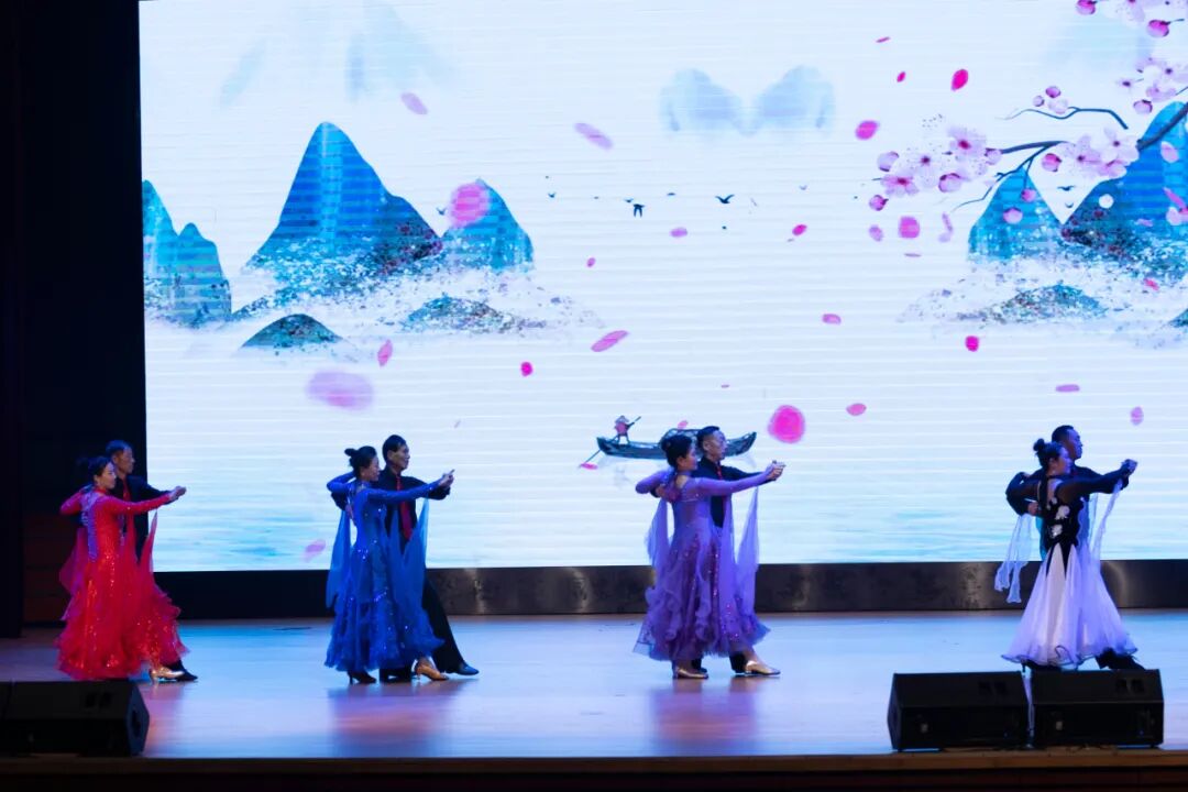 东方老年大学校本部新疆舞班带来的群舞《最美新疆》、民族舞班群舞《起舞》、中国风健身舞班蒙古族筷子舞《白马谣》、瑜伽班舞韵瑜伽《万疆流韵》、红蜻蜓摩登舞团交谊舞与国标舞《水乡温柔》《我和我的祖国》、水兵舞团《厉害了我的国》和一爱校区民族舞班群舞《不忘初心 前进中国》展现了老年群体老有所学、老有所乐的精神风貌与家国情怀。