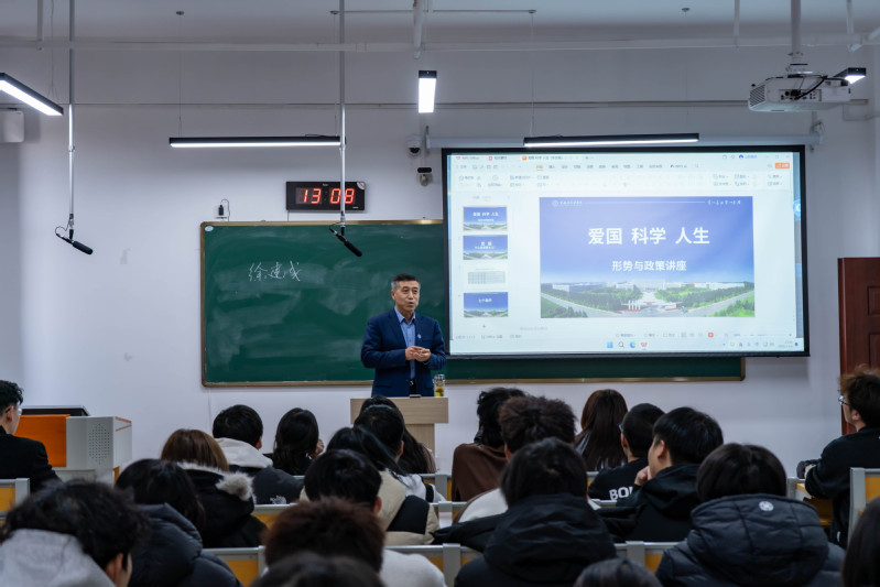 为深入学习贯彻习近平总书记关于思政课建设的重要论述和指示精神,全面落实立德树人根本任务,副校长徐建成于12月8日走进《形势与政策》课堂,以“爱国 科学 人生”为主题,为学生讲授了一堂学理透彻、鲜活生动的思政课。