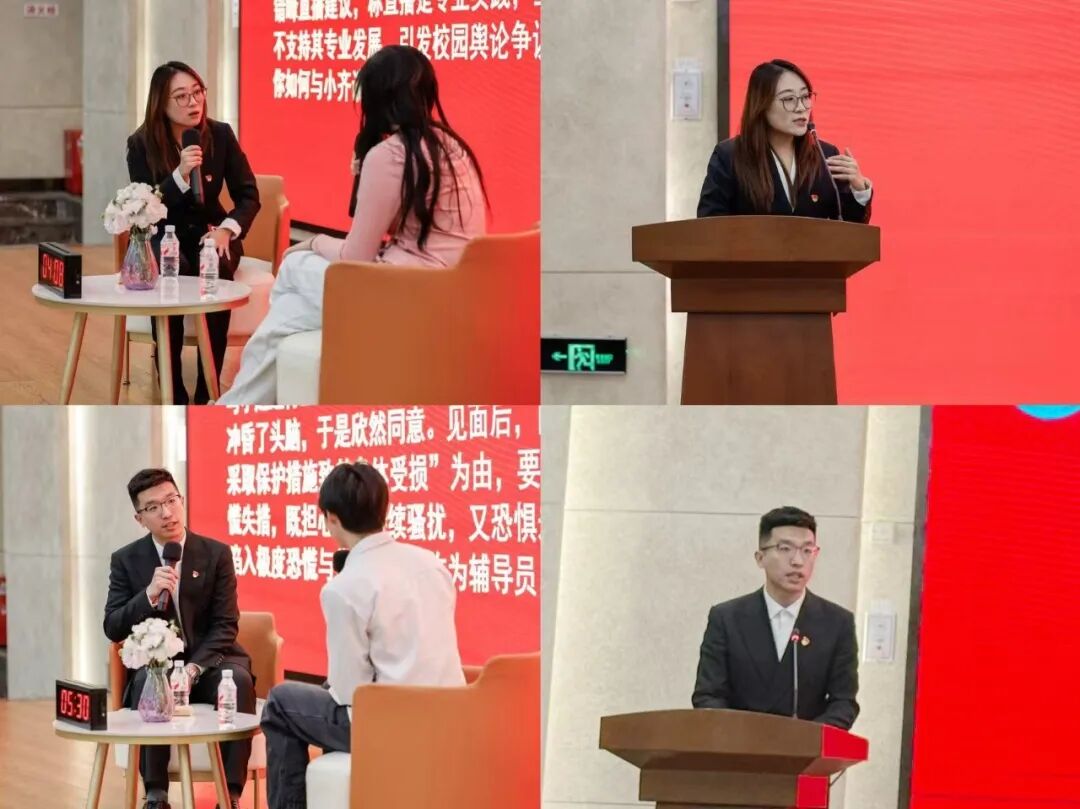 在专家点评环节,哈尔滨师范大学融媒体中心主任,全国高校思想政治工作中青年骨干、全国最美高校辅导员,省首批高校辅导员名师工作室主持人,全国高校辅导员素质能力大赛一等奖获得者刘国权老师做了精彩点评。对选手们的现场表现给予了高度评价。他结合自身丰富的思政工作与大赛评审经验,从理论把握、谈话技巧、共情能力及总结升华等多个维度进行了精辟剖析,并提出了宝贵的专业化发展建议,令在场师生受益匪浅。