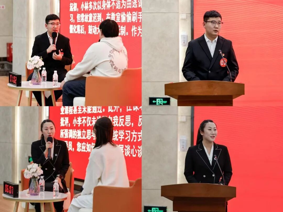 本次大赛共有58名辅导员报名参赛。比赛初赛历经基础知识测试、学生信息识别、案例研讨等环节选拔。最终8名辅导员脱颖而出入围决赛。决赛为谈心谈话环节,全面考察辅导员理论运用、沟通技巧、应急处理与思想引导能力。赛场上,辅导员们法、理、情交融,既坚持原则又充满温情,以扎实的理论素养和专业能力展现了我校辅导员积极向上、踏实进取、工作扎实的精神面貌和职业素养。