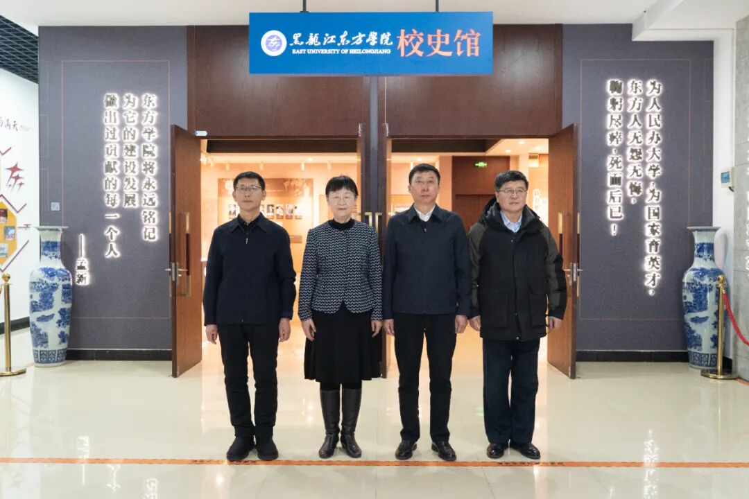 演出前,黑龙江开放大学领导一行前往我校图书馆、校史馆参观。杨金铭对我校创办历程、取得的发展成就给予了高度肯定,对我校非营利性办学以及“公有民办”体制的改革壮举表达由衷敬意。