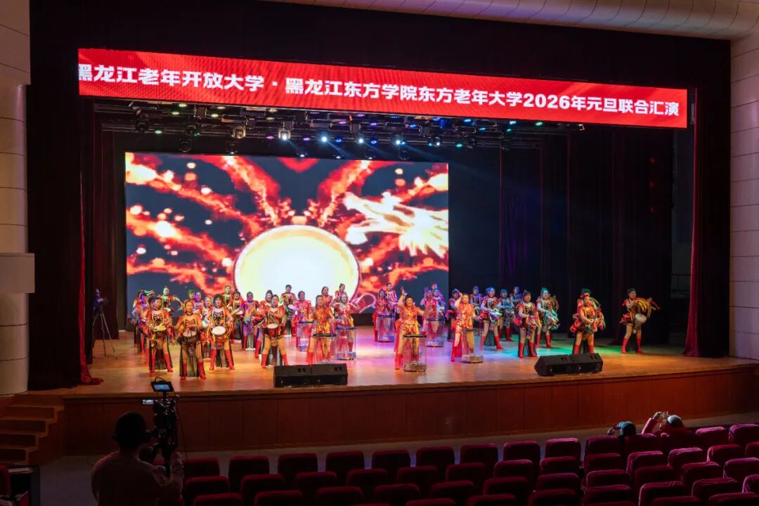 12月26日,“骐骥逐梦启征程,银龄共建贺新年”黑龙江老年开放大学·黑龙江东方学院东方老年大学2026年元旦联合汇演在我校养正讲堂举行。