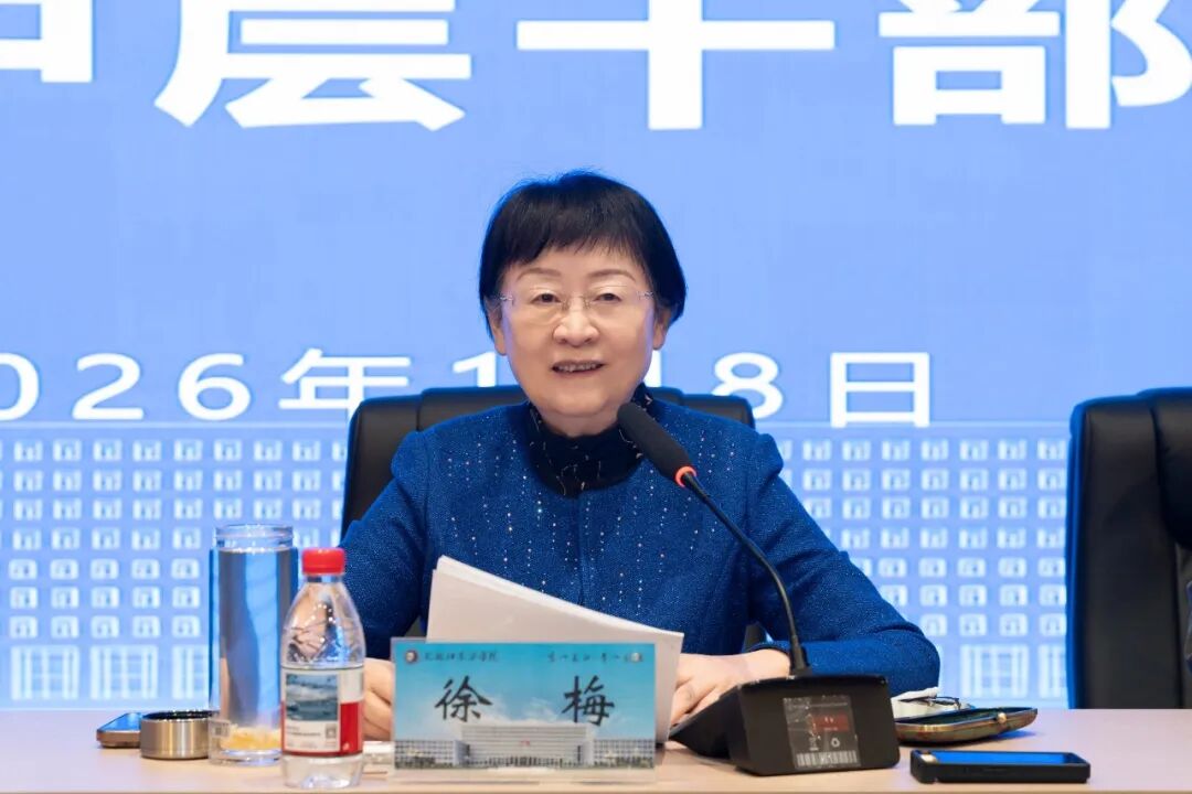 徐梅围绕寒假期间全局性重点任务作出部署:一是精心编制“十五五”发展规划,提升规划编制的专业性与科学性;二是深化人才培养方案修订,优化课程体系,强化产教融合与过程管理;三是扎实推进审核评估整改,确保问题清单转化为成效清单;四是全力做好申硕冲刺准备,完善材料,迎接正式申报;五是全面启动“融入—深耕哈南”区域服务专项行动,构建系统化区域合作机制;六是加速推进招生工作系统性改革,并于寒假期间实施;七是加快推进新建学生公寓项目,切实改善学生住宿条件。