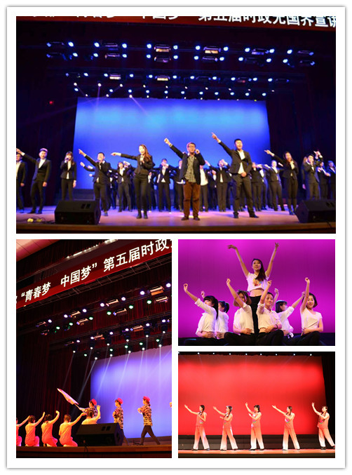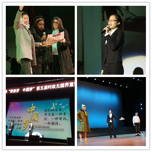 比赛由时政宣讲和节目展示两个环节组成。2015级各个支部都别出心裁,利用专业语言,结合专业特色,以小品、朗诵、舞蹈、情景剧等独特的方式展现出对时政、对“青春梦 中国梦”的理解,给现场观众留下深刻的印象。2015级俄语1班最终夺得冠军。