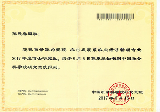 日前,从经济贸易学部获悉,我院首届国际商务专业硕士研究生陈元春被该院录取为农业经济管理专业博士研究生。